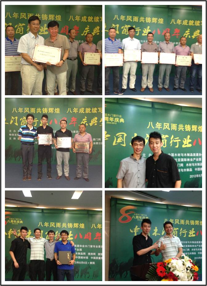 2012年8月6日,中國木門窗行業8周年慶典暨表彰大會在貴陽嘉華酒店如期舉行。中國木材與木制品流通協會會長劉能文,中國木材與木制品流通協會木門窗專業委員會會長張國林,中國木材與木制品流通協會木門窗專業委員會秘書長王永林,中國木材與木制品流通協會木門窗專業委員會常務副秘書長謝春林及各企業代表參加本次會議。佛山樹興木門廠作為協會的理事單位成員也參加了此次會議。會上,本廠榮獲協會頒發的“中國全木門十大品牌”稱號,可謂實至名歸。另外,樹興西安紅星店和寧波永達店更是榮獲協會頒發的“中國木門行業星級店”的光榮稱號。本廠產品“風生水起”也榮獲2012中國木門(嘉寶莉杯)設計大賽“最受消費者歡迎款式”之稱。